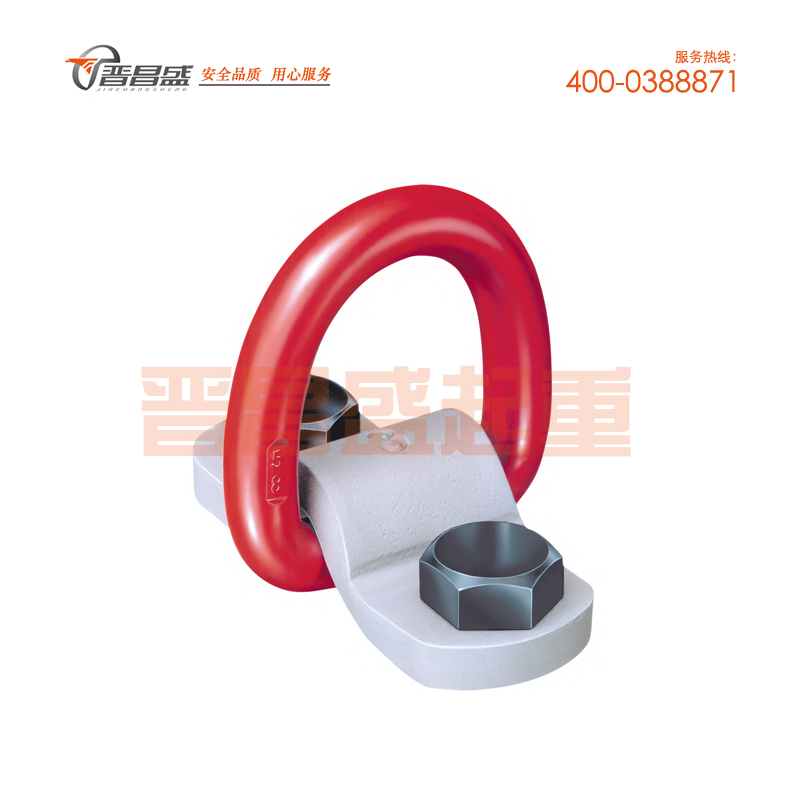 用螺栓與吊裝件連接的吊環(huán),承載能力為3~8T,堅(jiān)固的結(jié)構(gòu)4倍的安全系數(shù),吊環(huán)可以180°傾斜,螺栓連接板也作為標(biāo)志板。